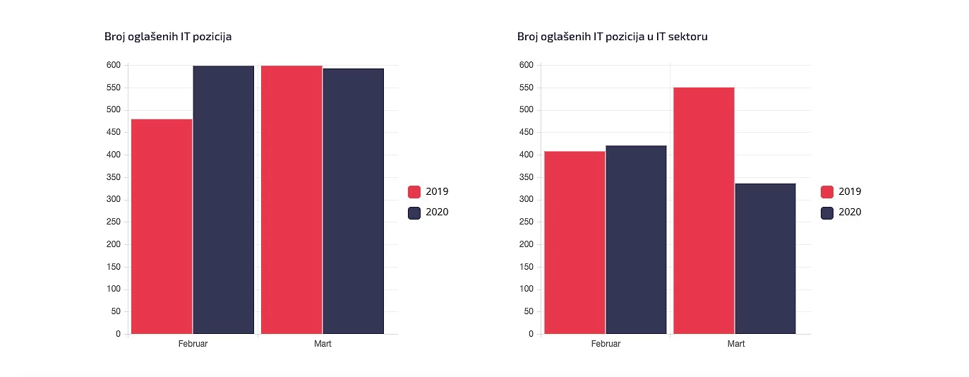 Sa druge strane, opao je i otvoreni broj pozicija u IT-ju, ali manje nego u drugim sektorima. Za ovaj ispod prosečni pad zaslužne su pre svega kompanije iz drugih sektora, koje su povećale broj traženih IT pozicija – još jedna potvrda da kompanije iz svih oblasti vide svoj opstanak u trenutnoj pandemiji kroz digitalizaciju i digitalnu transformaciju.