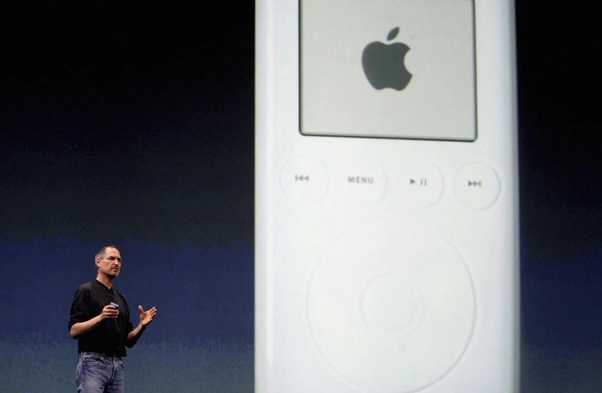 Tek u 2001. Jobs je shvatio da se zarobio u softverskoj industriji i da obrada videa nije jedini način na koji se može zaraditi. Tržište prenosnih mp3 playera bilo je ograničeno, a svi prisutni uređaji bili su ružni. Kako bi doskočio tome, Jobs je napravio mali eksperiment i odlučio da stvori prenosni player iz Applea pod imenom iPod.