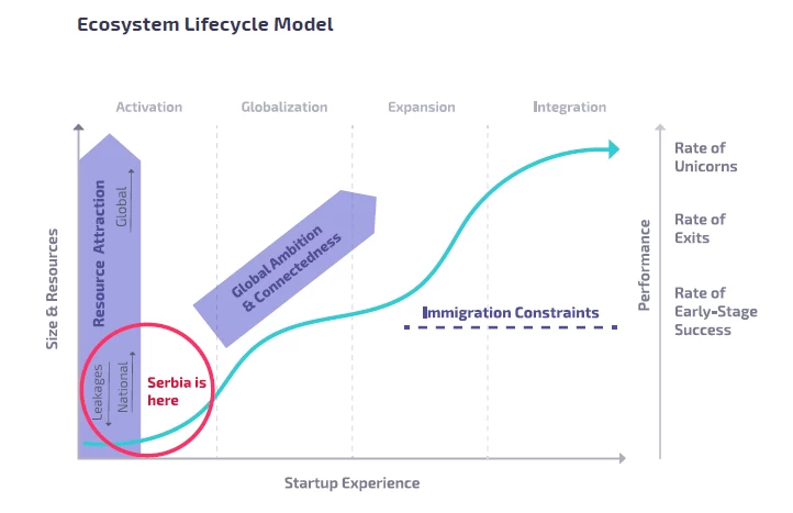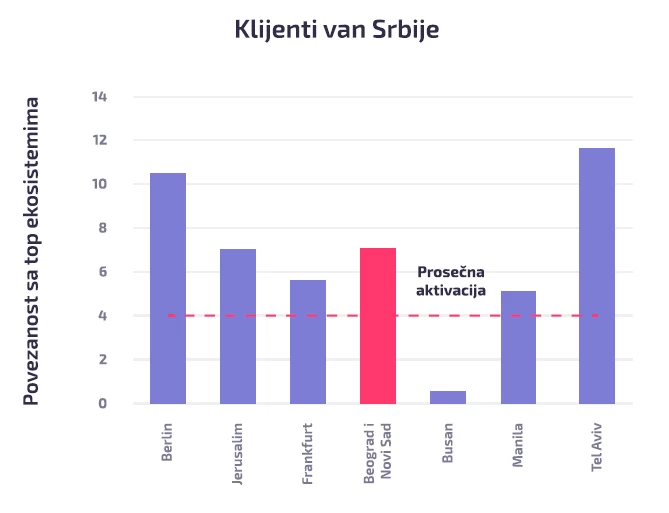 Najbolje rangirani globalni ekosistemimi predstavljaju izvor iskustva i znanja za kreiranje poslovnih modela i startapa koji imaju potencijal da postanu globalni lideri. Povezanost osnivača startapa u Srbiji sa globalnim liderima je jača od proseka, ali i se napominje da i tu postoji prostor za poboljšanje u pogledu integracije tih osnivača u naš ekosistem.