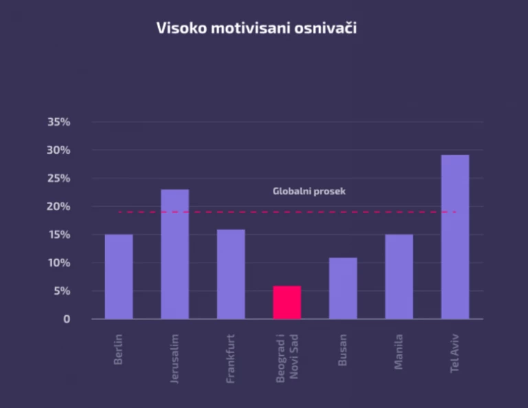 Globalni startapi su i dosta ambiciozniji od domaćih. To se najbolje primećuje kroz podatak da duplo više globalnih startapa cilja tržište od preko 30 milijardi dolara — 30 odsto naspram naših 15 odsto.